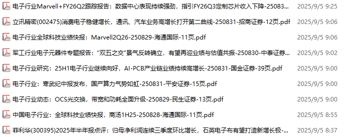 电子行业资料包,月度新增105份(2025.8.29-2025.10.10):
