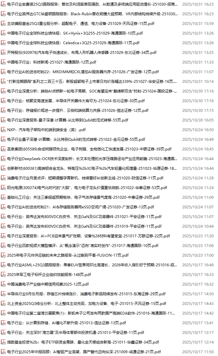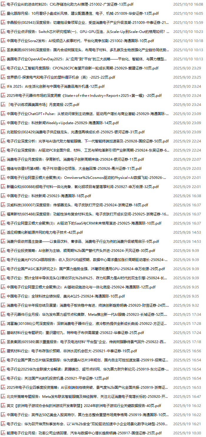 电子行业资料包,月度新增37份(2025.10.10-2025.10.31):