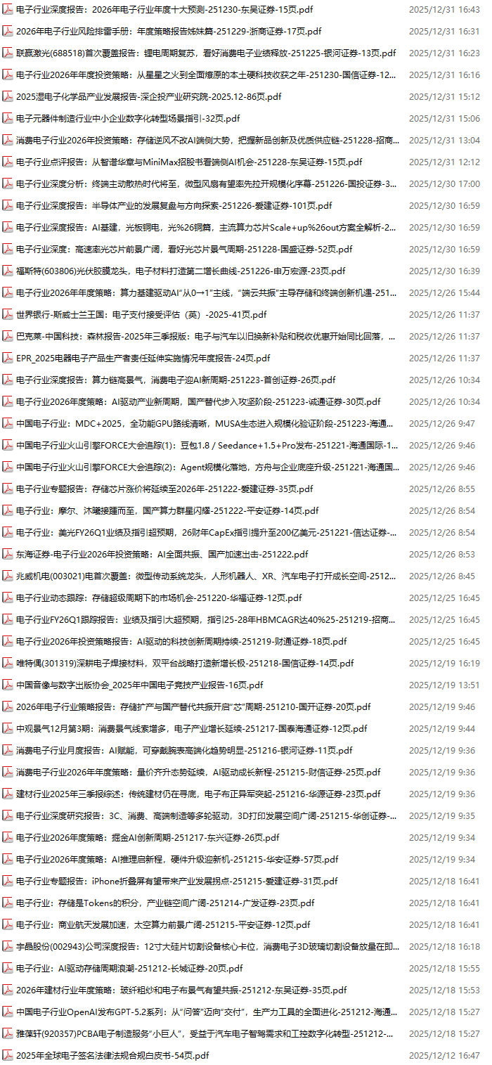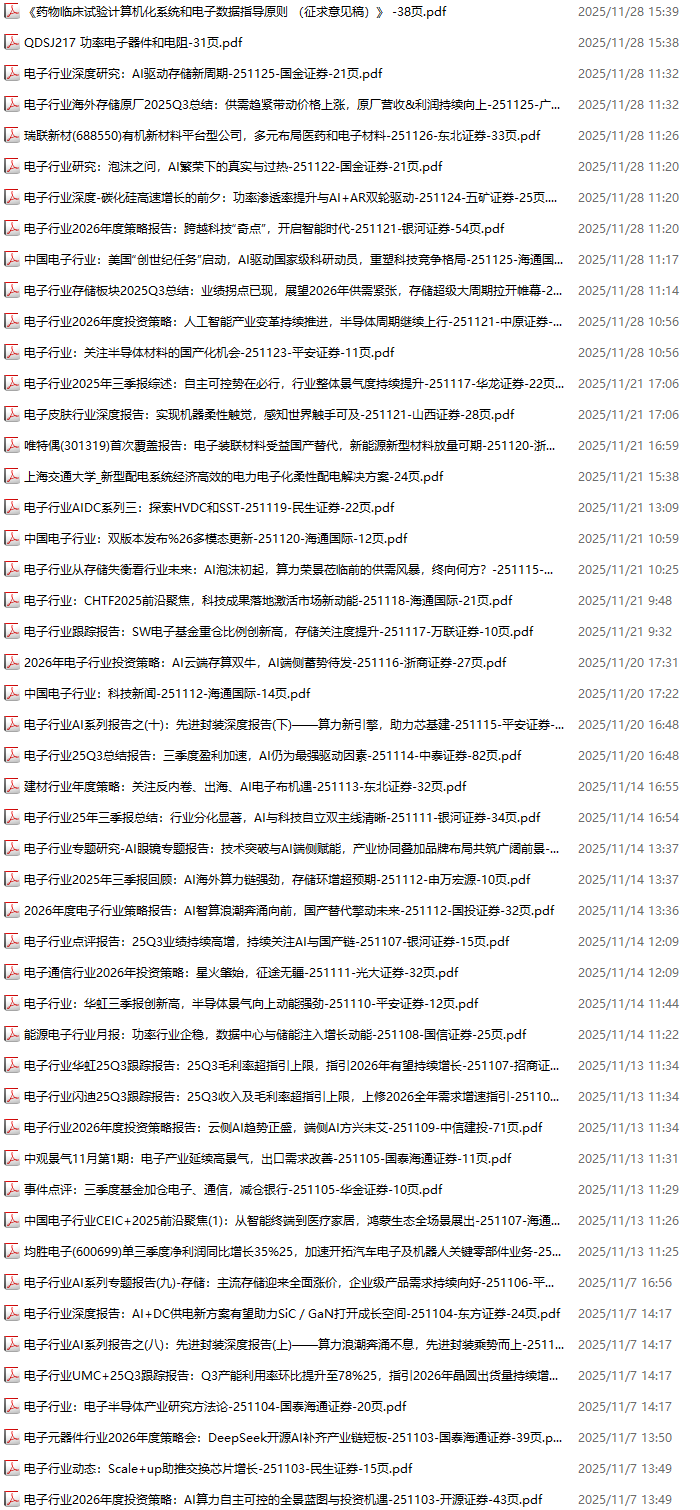 电子行业资料包,月度新增54份(2025.10.31-2025.11.28):