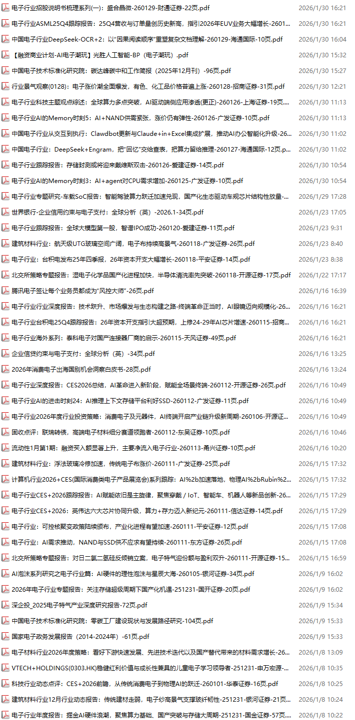 电子行业资料包,月度新增46份(2025.12.31-2026.1.31):