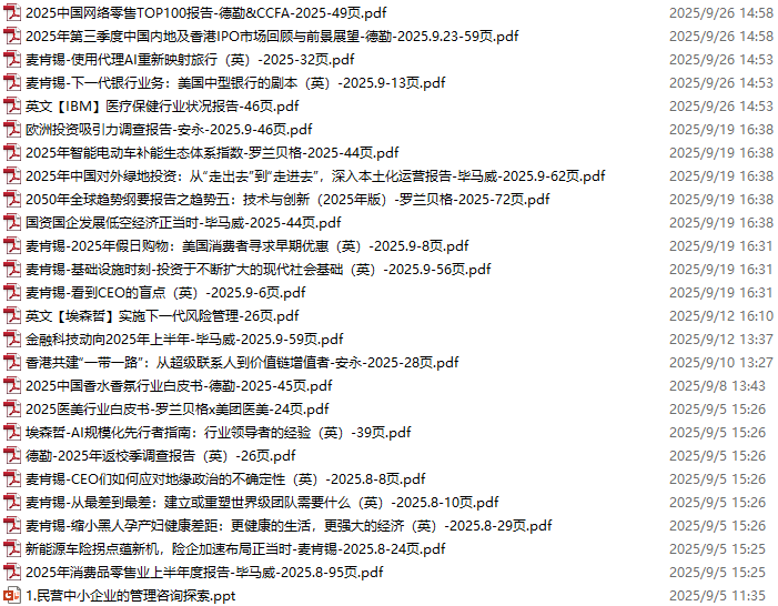 管理咨询资料包,月度新增26份(2025.8.30-2025.9.27):