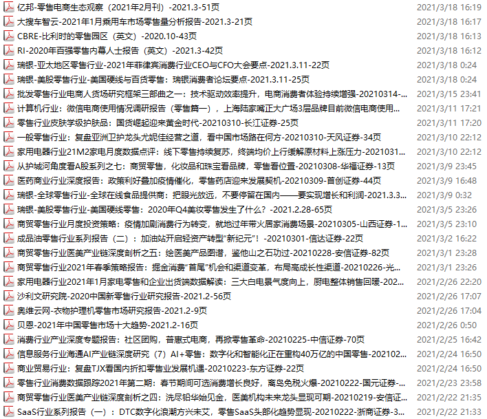 零售、新零售、便利店资料包,月度新增29份(2021.2.20-3.20)