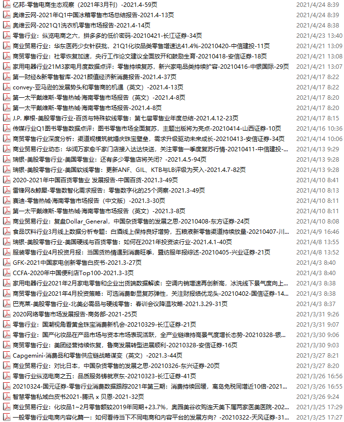 零售、新零售、便利店资料包,月度新增41份(2021.3.20-4.24)