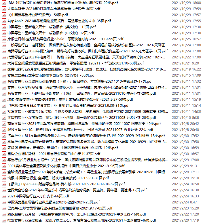 零售、新零售、便利店资料包,月度新增37份(2021.9.18-10.30)