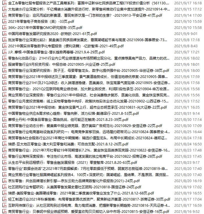零售、新零售、便利店资料包,月度新增35份(2021.8.14-9.18)