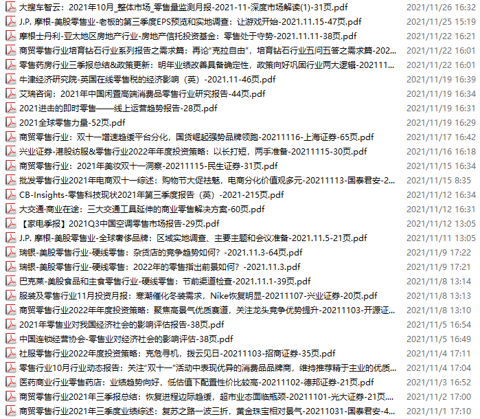 零售、新零售、便利店资料包,月度新增29份(2021.10.30-11.27)