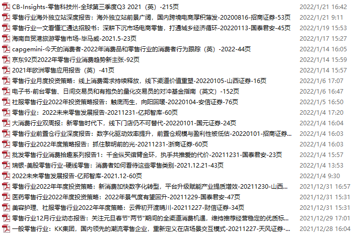 零售、新零售、便利店资料包,月度新增22份(2021.12.25-2022.1.22):