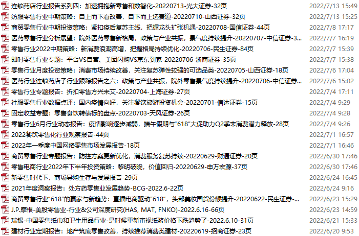 零售、新零售、便利店资料包,月度新增22份(2022.6.18-7.16):