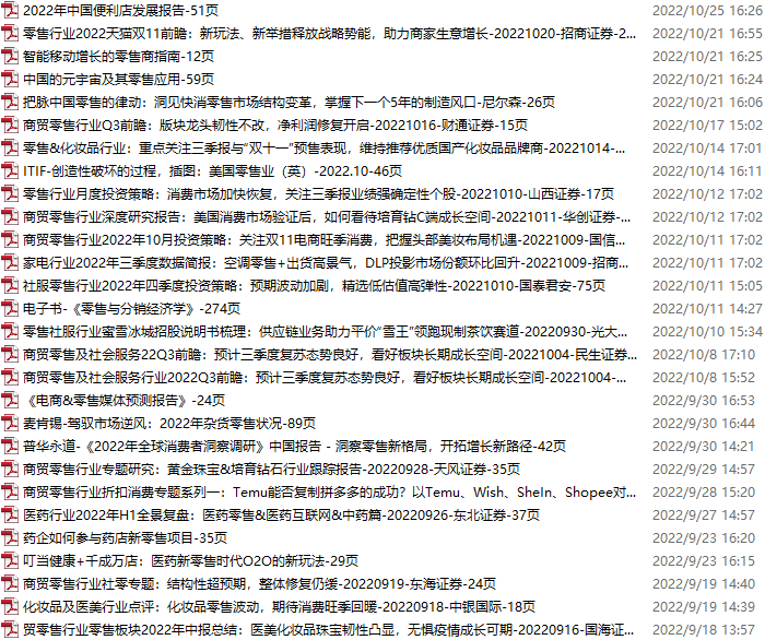 零售、新零售、便利店资料包,月度新增28份(2022.9.17-10.22):