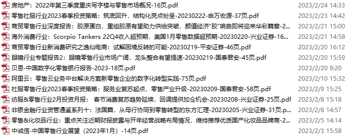 零售、新零售、便利店资料包,月度新增13份(2023.1.28-2023.2.25):