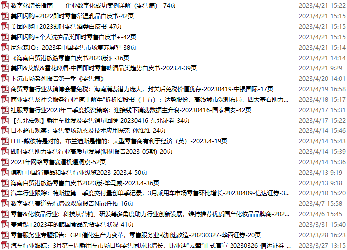 零售、新零售、便利店资料包,月度新增24份(2023.3.25-2023.4.22)