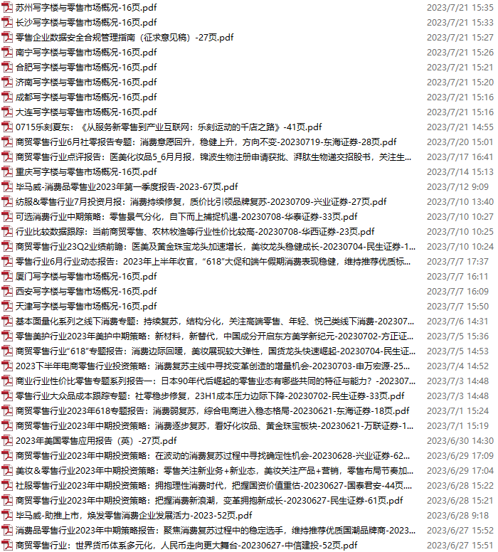 零售、新零售、便利店资料包,月度新增38份(2023.6.24-2023.7.22):
