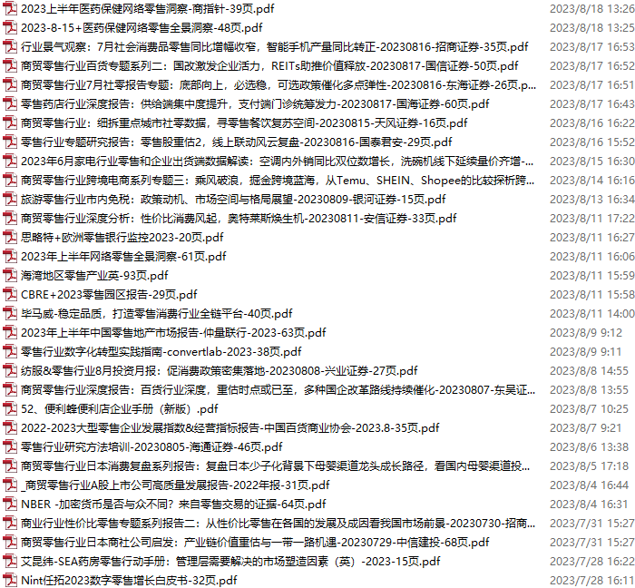 零售、新零售、便利店资料包,月度新增33份(2023.8.19-2023.9.16):