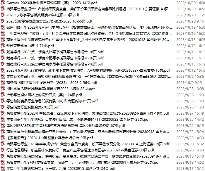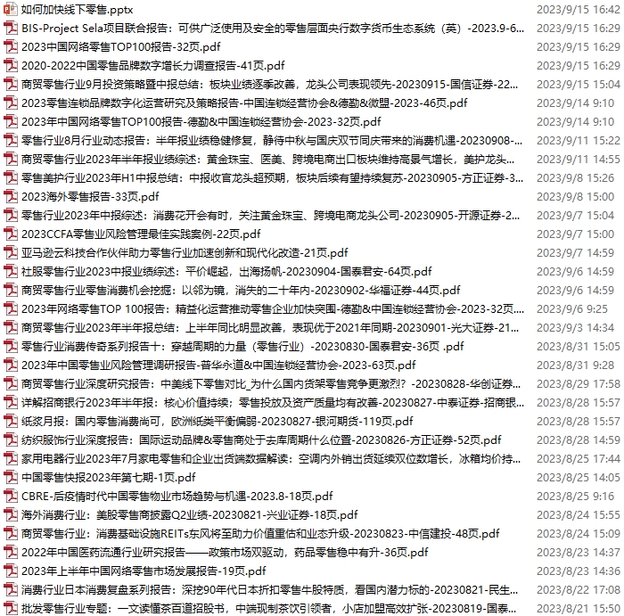 零售、新零售、便利店资料包,月度新增28份(2023.9.16-2023.10.21):