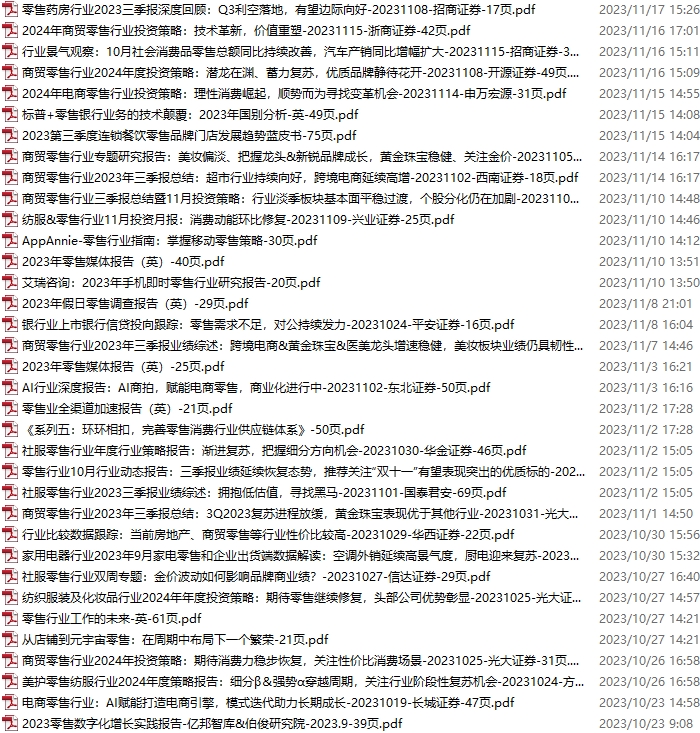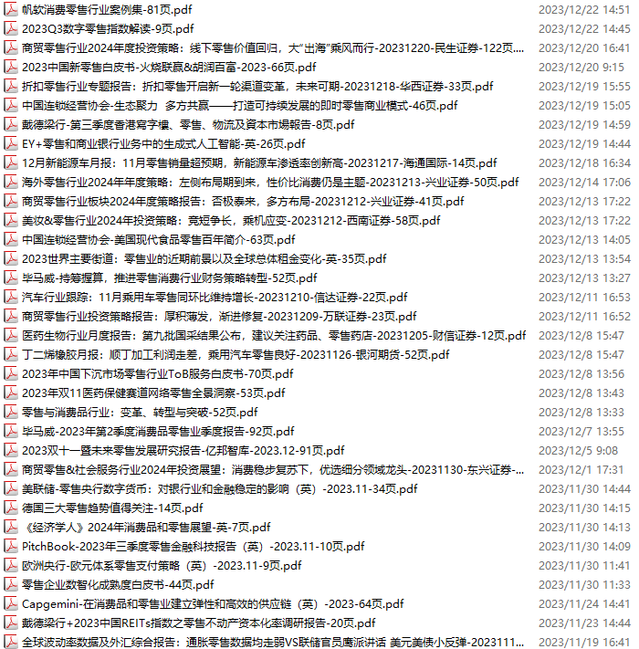 零售、新零售、便利店资料包,月度新增34份(2023.11.18-2023.12.23):