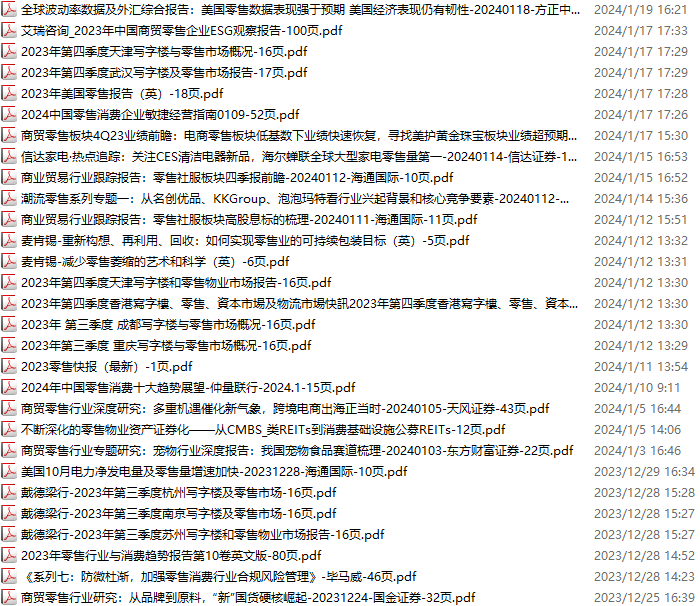 零售、新零售、便利店资料包,月度新增29份(2023.12.23-2024.1.20):