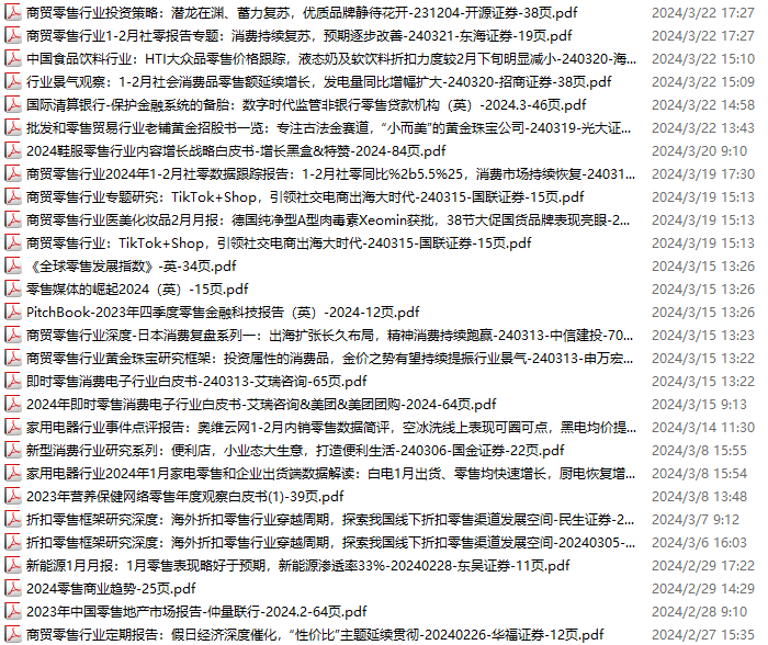 零售、新零售、便利店资料包,月度新增28份(2024.2.24-2024.3.23):