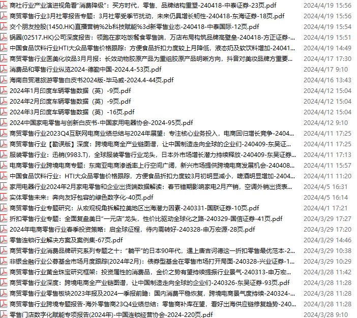 零售、新零售、便利店资料包,月度新增30份(2024.3.23-2024.4.20):