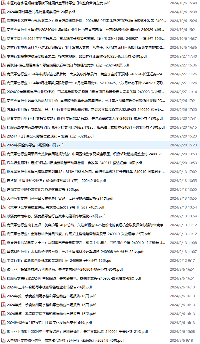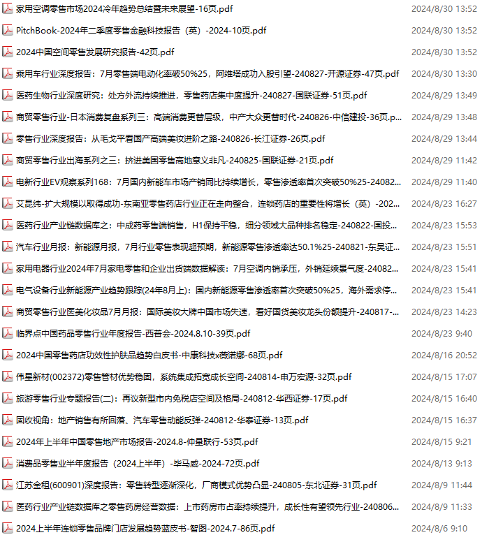 零售、新零售、便利店资料包,月度新增39份(2024.8.31-2024.10.6):