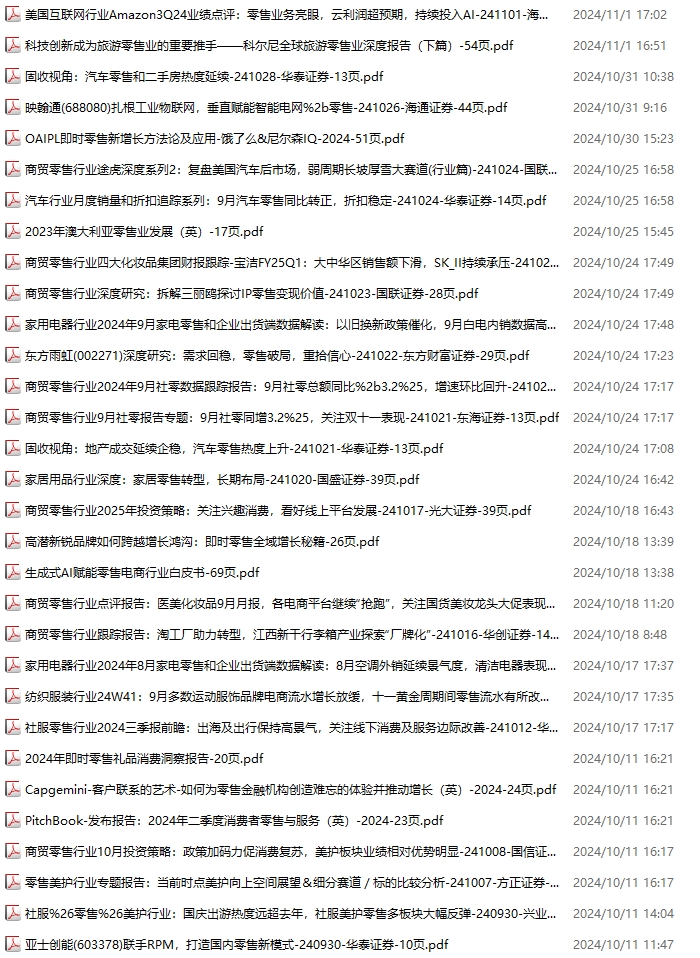 零售、新零售、便利店资料包,月度新增31份(2024.10.6-2024.11.2):