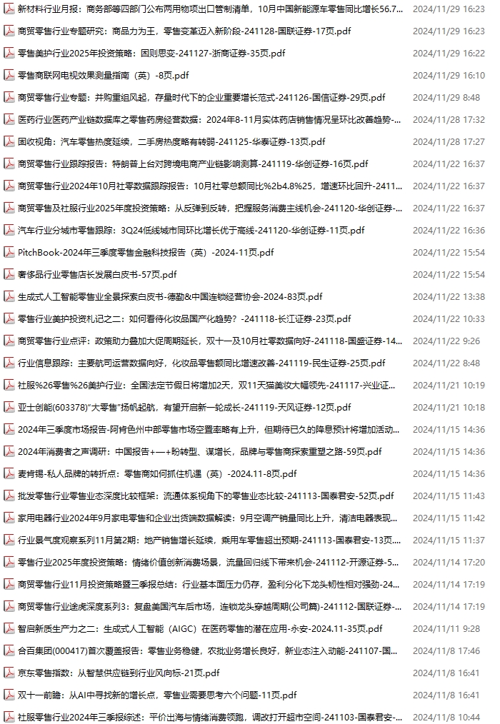 零售、新零售、便利店资料包,月度新增33份(202411.2-2024.11.30):