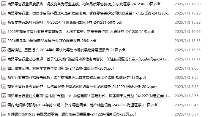 零售、新零售、便利店资料包,月度新增13份(2024.11.30-2025.1.4):