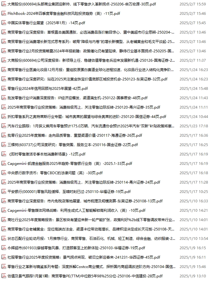 零售、新零售、便利店资料包,月度新增30份(2025.1.4-2025.2.8):