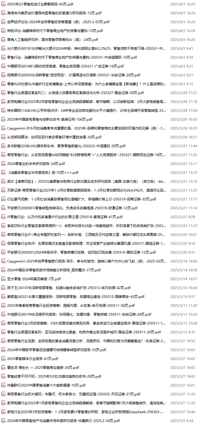 零售、新零售、便利店资料包,月度新增48份(2025.3.1-2025.4.4):