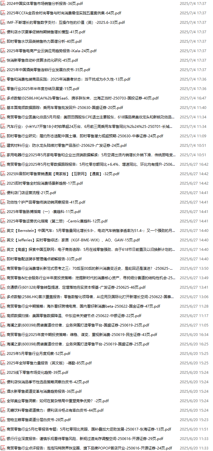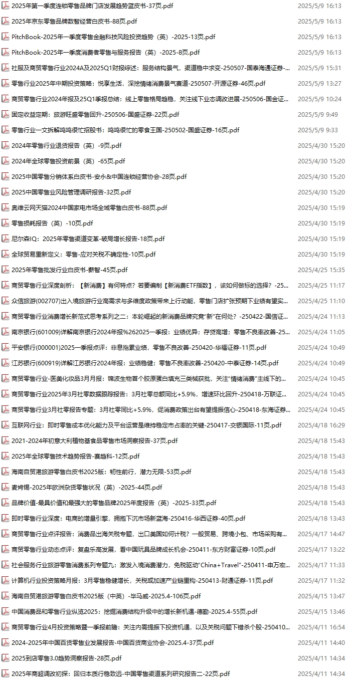 零售、新零售、便利店资料包,月度新增50份(2025.4.4-2025.5.9):