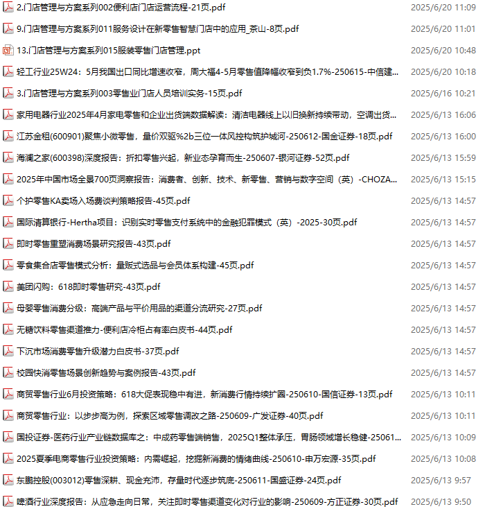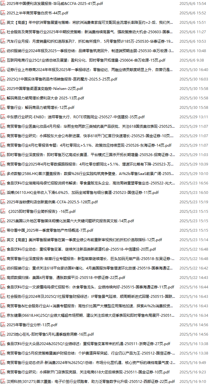 零售、新零售、便利店资料包,月度新增41份(2025.5.9-2025.6.6):