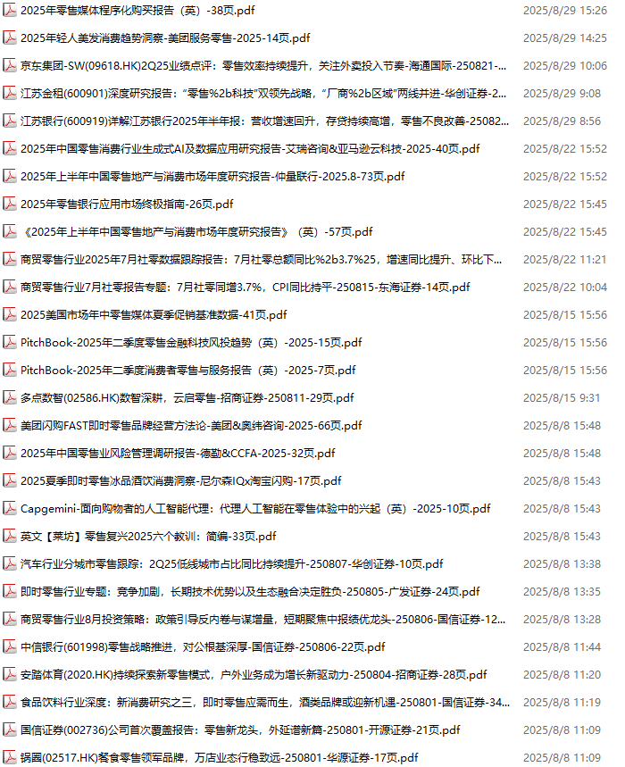 零售、新零售、便利店资料包,月度新增28份(2025.8.1-2025.8.29):
