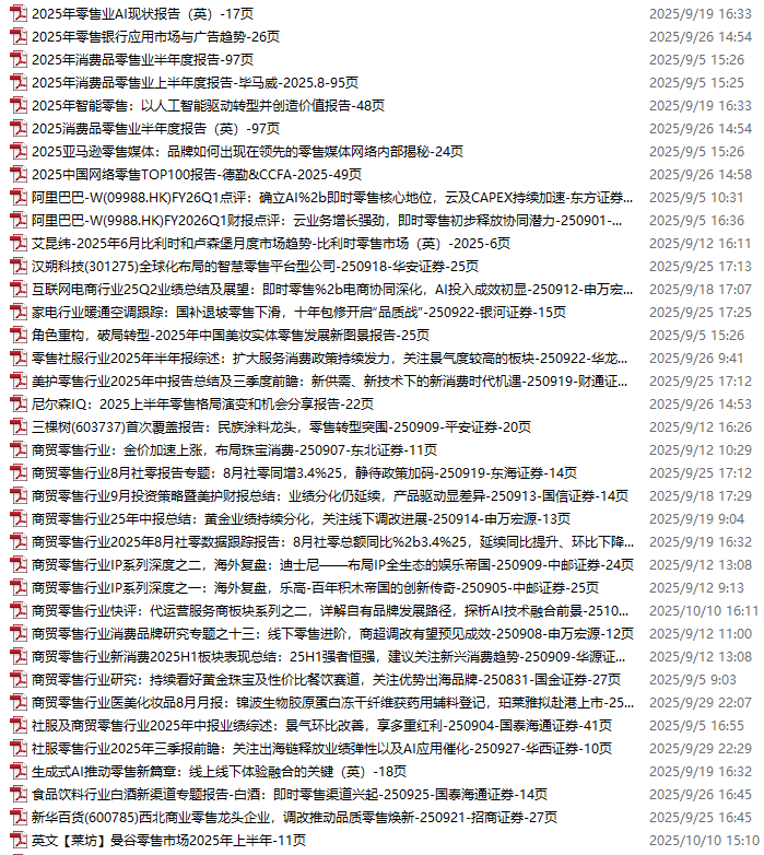 零售、新零售、便利店资料包,月度新增42份(2025.8.29-2025.10.10)