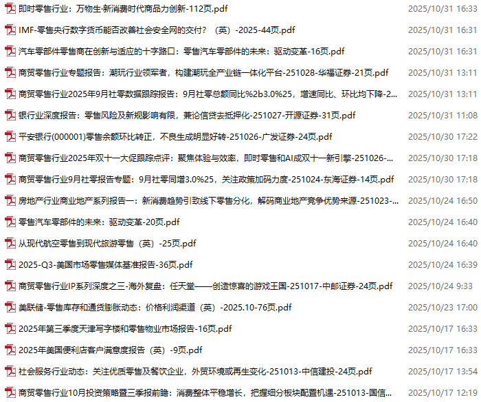 零售、新零售、便利店资料包,月度新增19份(2025.10.10-2025.10.31)
