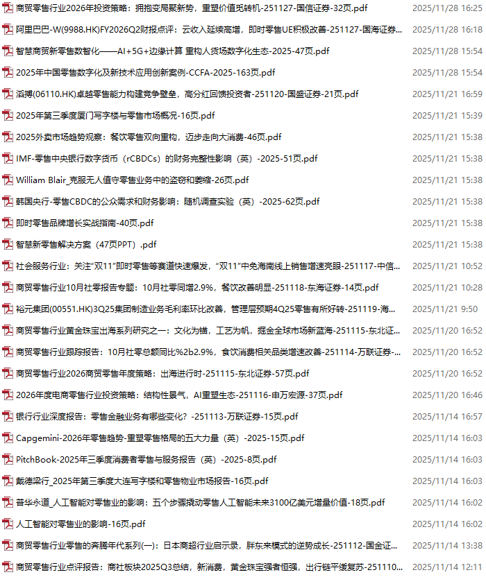 零售、新零售、便利店资料包,月度新增47份(2025.10.31-2025.11.28)