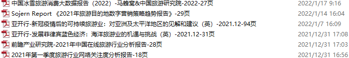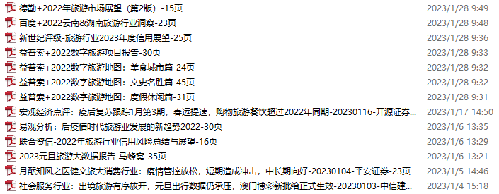 旅游、旅行、文旅资料包,月度新增13份(2022.12.31-2023.1.28)