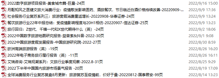 旅游、旅行、文旅资料包,月度新增12份(2022.8.13-9.17)