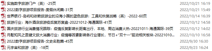 旅游、旅行、文旅资料包,月度新增8份(2022.9.17-10.22)