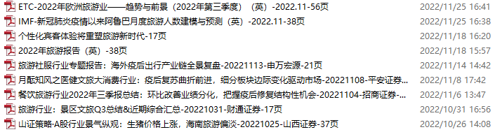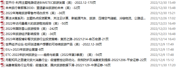 旅游、旅行、文旅资料包,月度新增13份(2022.11.26-12.31):