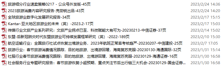 旅游、旅行、文旅资料包,月度新增10份(2023.1.28-2.25)