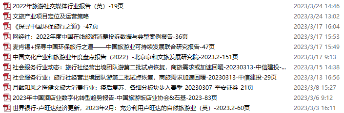 旅游、旅行、文旅资料包,月度新增11份(2023.2.25-3.25)