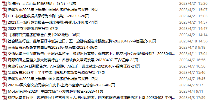 旅游、旅行、文旅资料包,月度新增16份(2023.3.25-4.22)