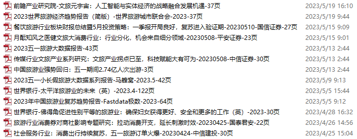 旅游、旅行、文旅资料包,月度新增13份(2023.4.22-5.20)