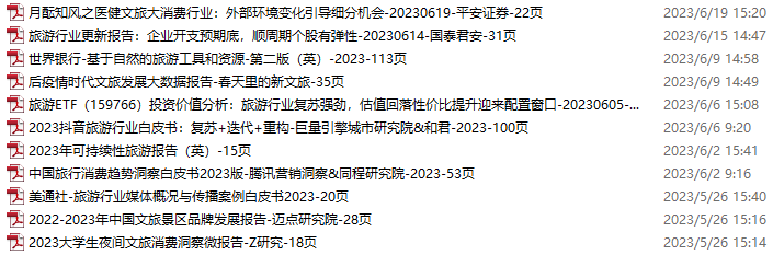 旅游、旅行、文旅资料包,月度新增11份(2023.5.20-6.24)