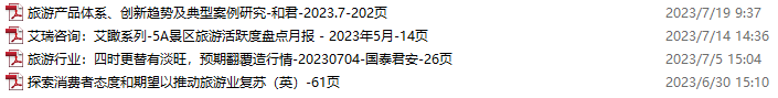 旅游、旅行、文旅资料包,月度新增4份(2023.6.24-7.22)