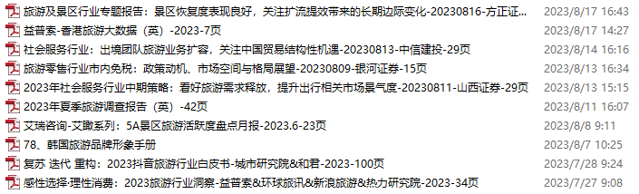 旅游、旅行、文旅资料包,月度新增10份(2023.7.22-8.19)