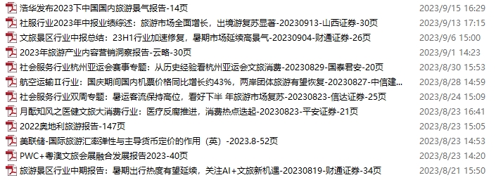 旅游、旅行、文旅资料包,月度新增12份(2023.8.19-9.16)