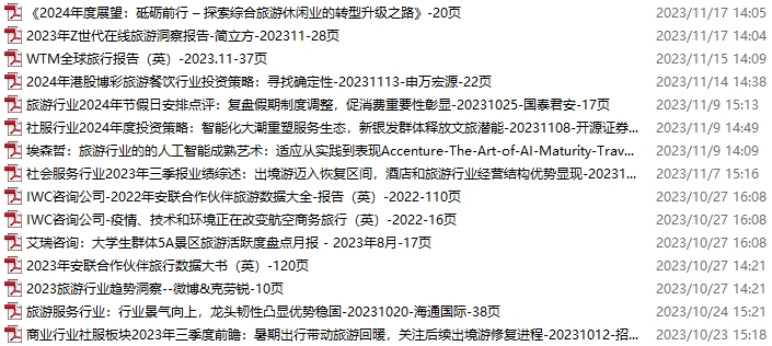 旅游、旅行、文旅资料包,月度新增8份(2023.11.18-12.23)