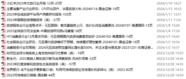 旅游、旅行、文旅资料包,月度新增14份(2023.12.23-2024.1.20)