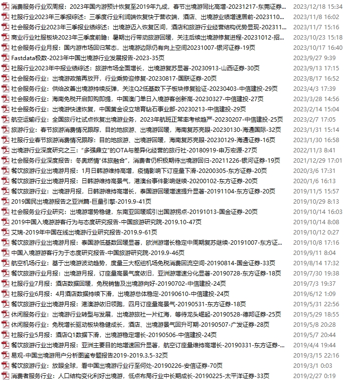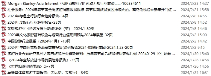 【新增专题】入境游、出境游新增99份,更新至2024.1.20