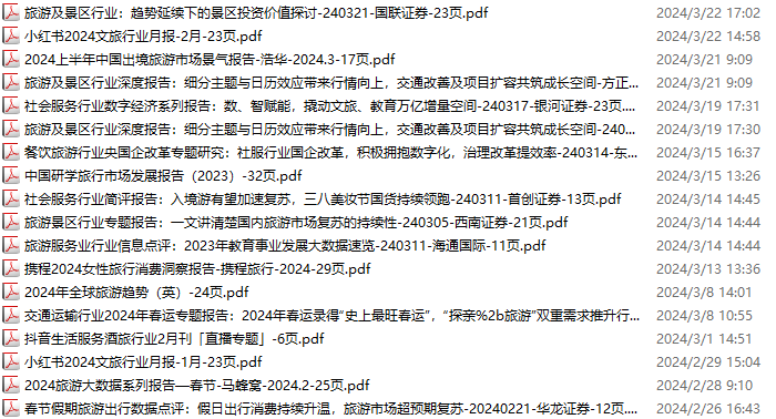 旅游、旅行、文旅、入境游资料包,月度新增18份(2024.2.24-2024.3.23):